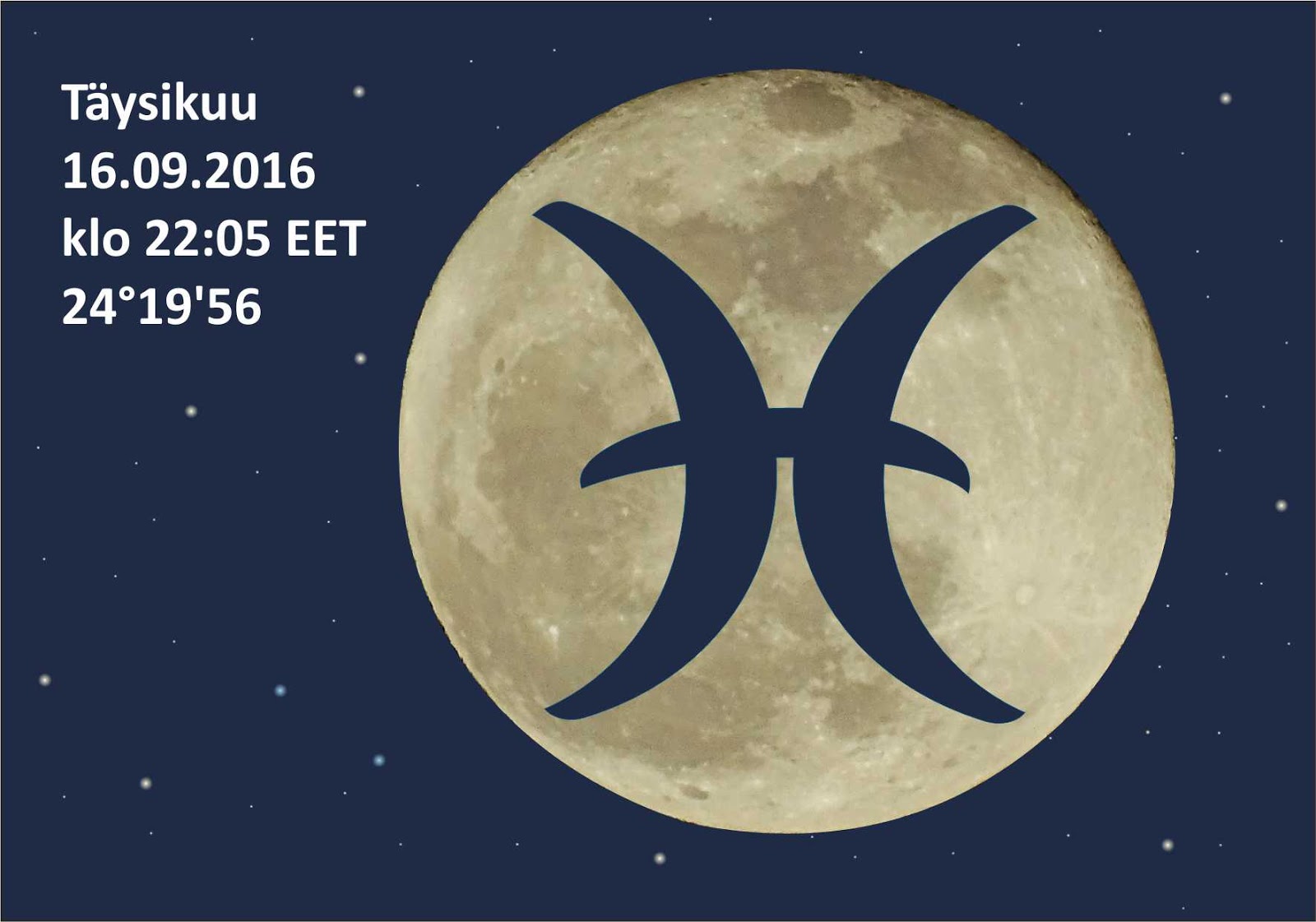 Täysikuu Kaloissa 24°20 perjantaina 16.09. klo 22:05 EET.