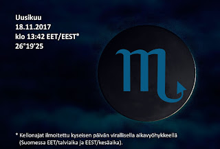 Uusikuu Skorpionissa 26°19 lauantaina 18.11. klo 13:42 EET/EEST*.