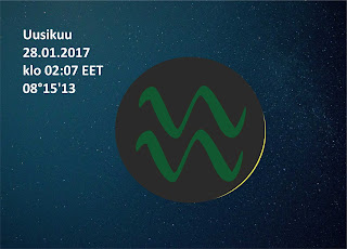 Uusikuu Vesimiehen merkissä 08°15 lauantaina 28.01. klo 02:07 EET.