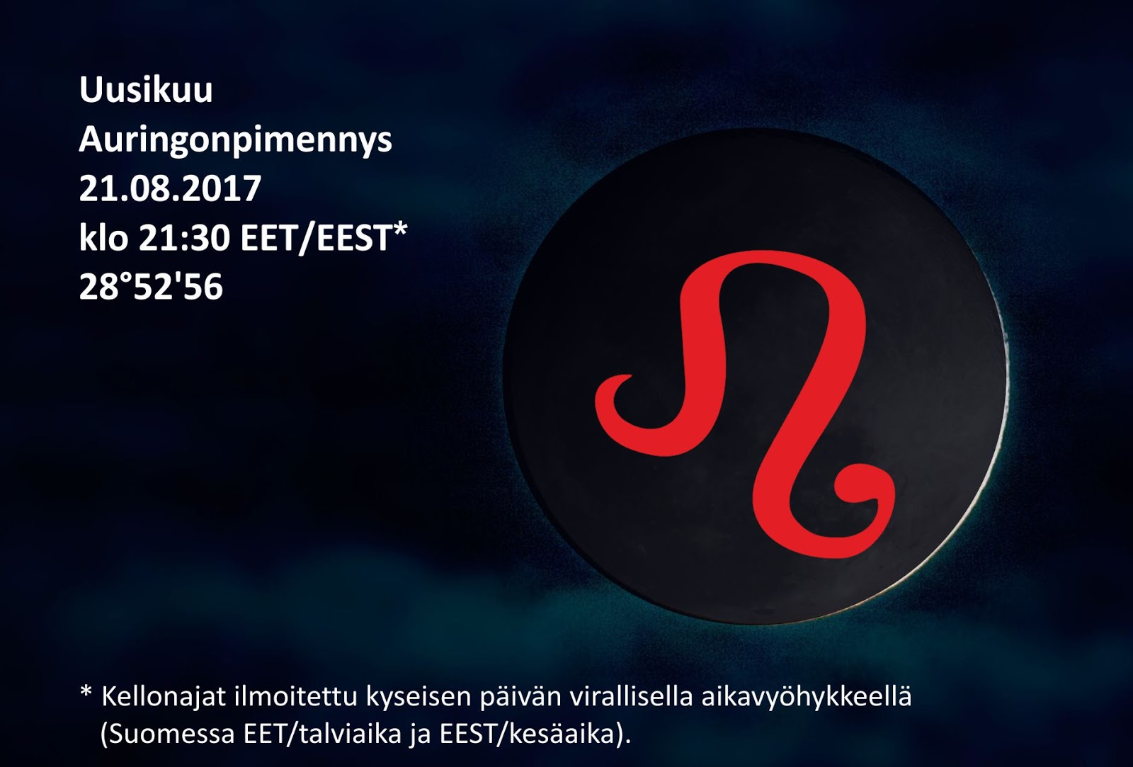 Uusikuu Leijonassa 28°53 maanantaina 21.08. klo 21:30 EET/EEST*.