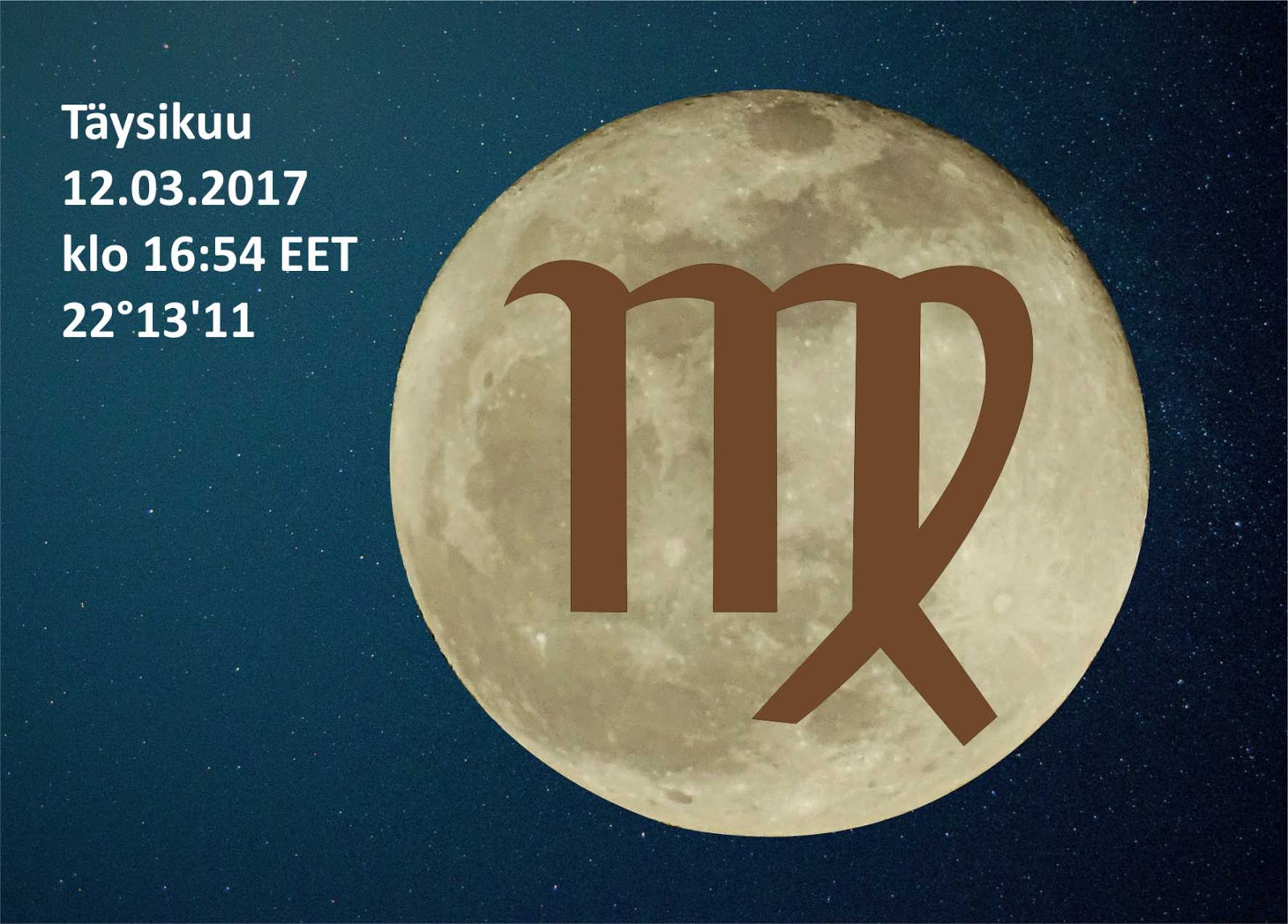 Täysikuu Neitsyen merkissä 22°13 sunnuntaina 12.03. klo 16:54 EET.