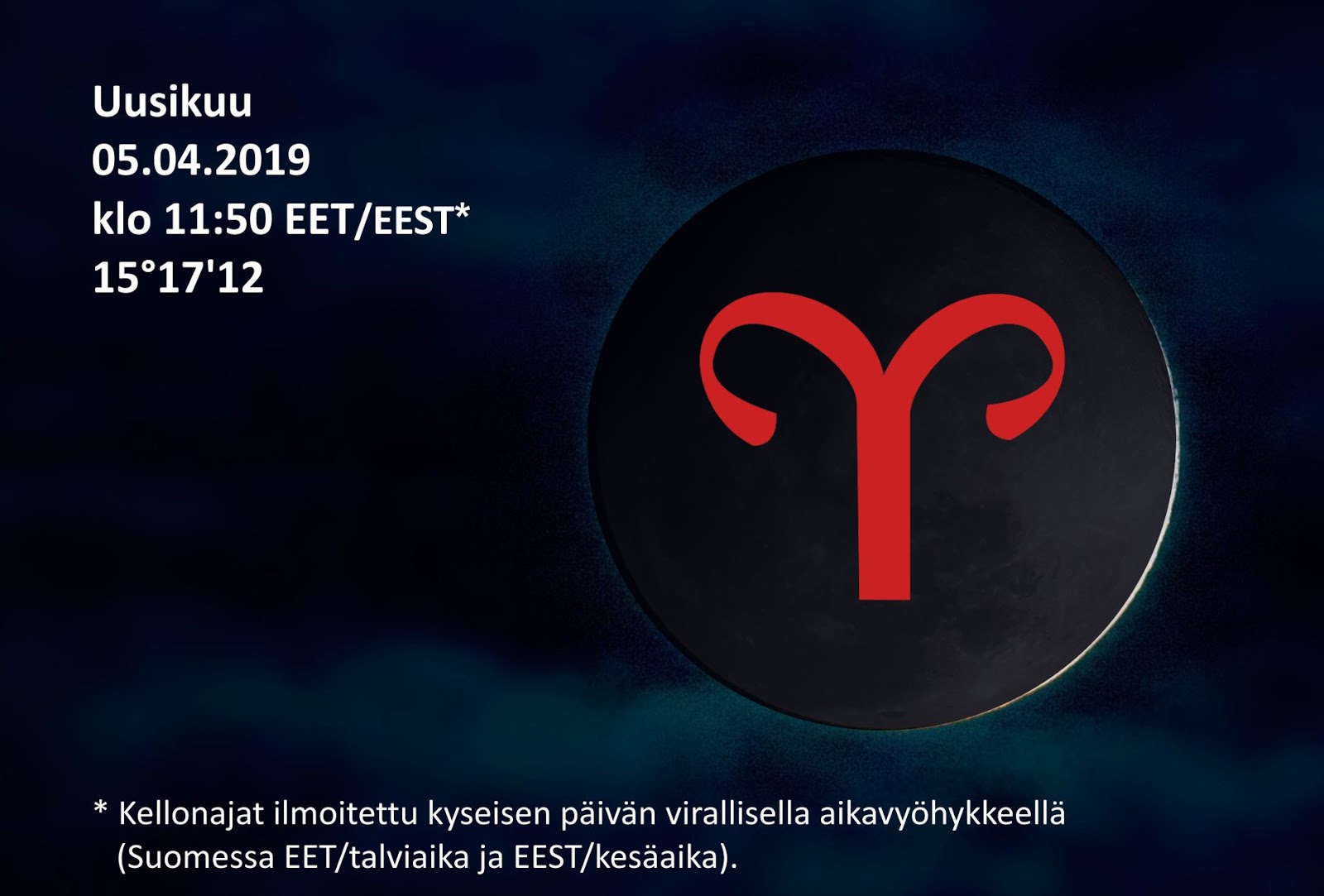 Uusikuu Oinaan merkissä 15°17 perjantaina 05.04. klo 11:50 EET*.